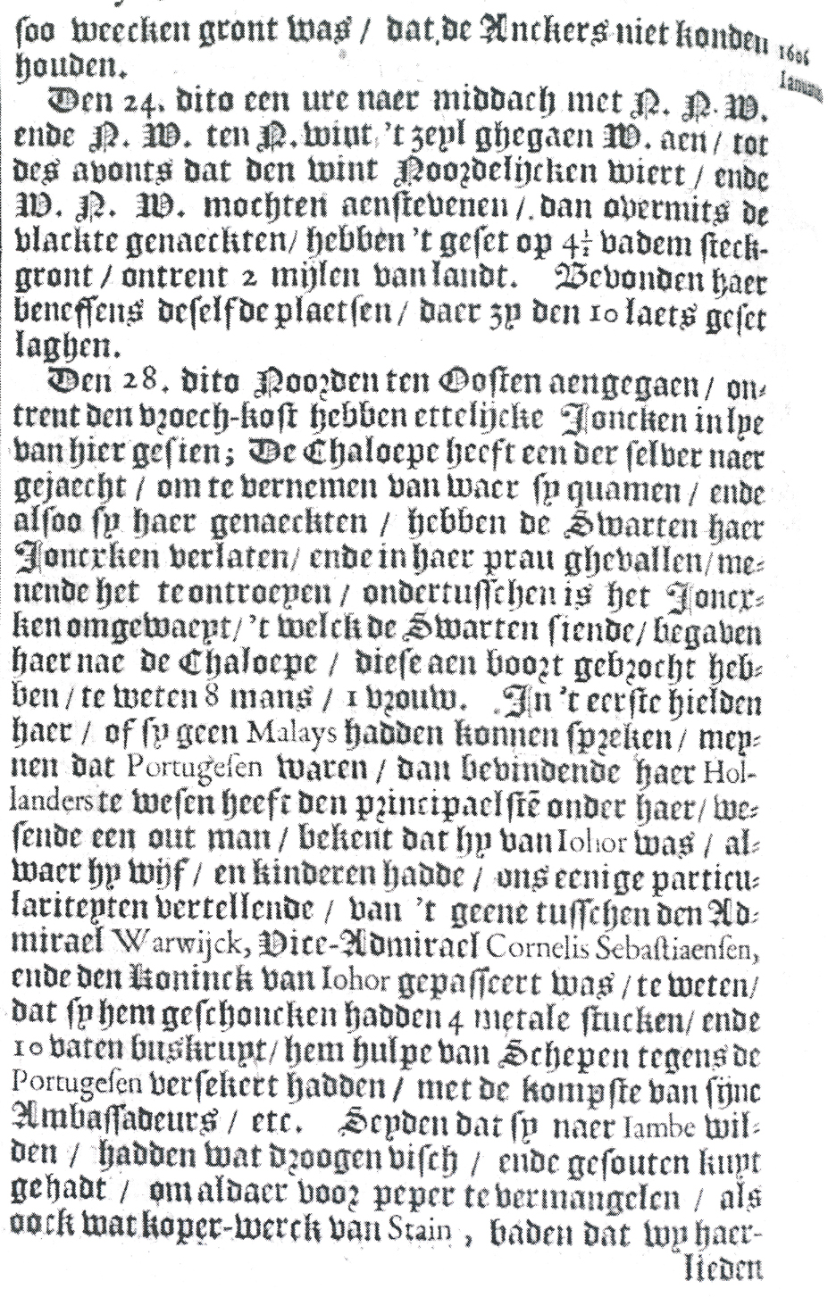 Swarten haer Joncrken verlaten, ende in haer prauw ghevallen, menende