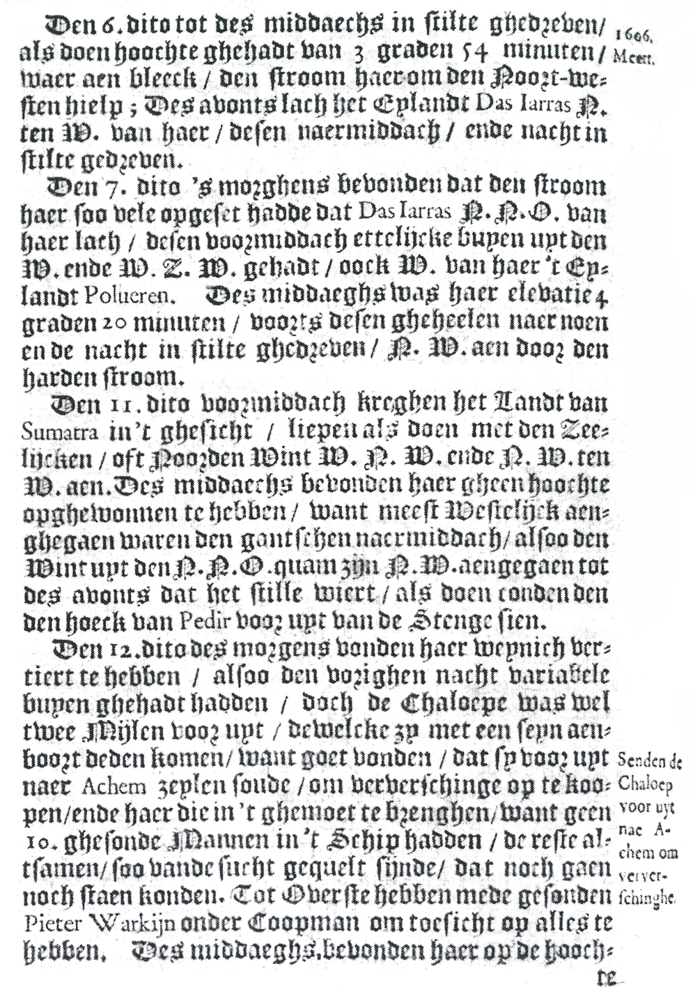 alles te hebben. Des middaeghs bevonden haer op de hooch- |