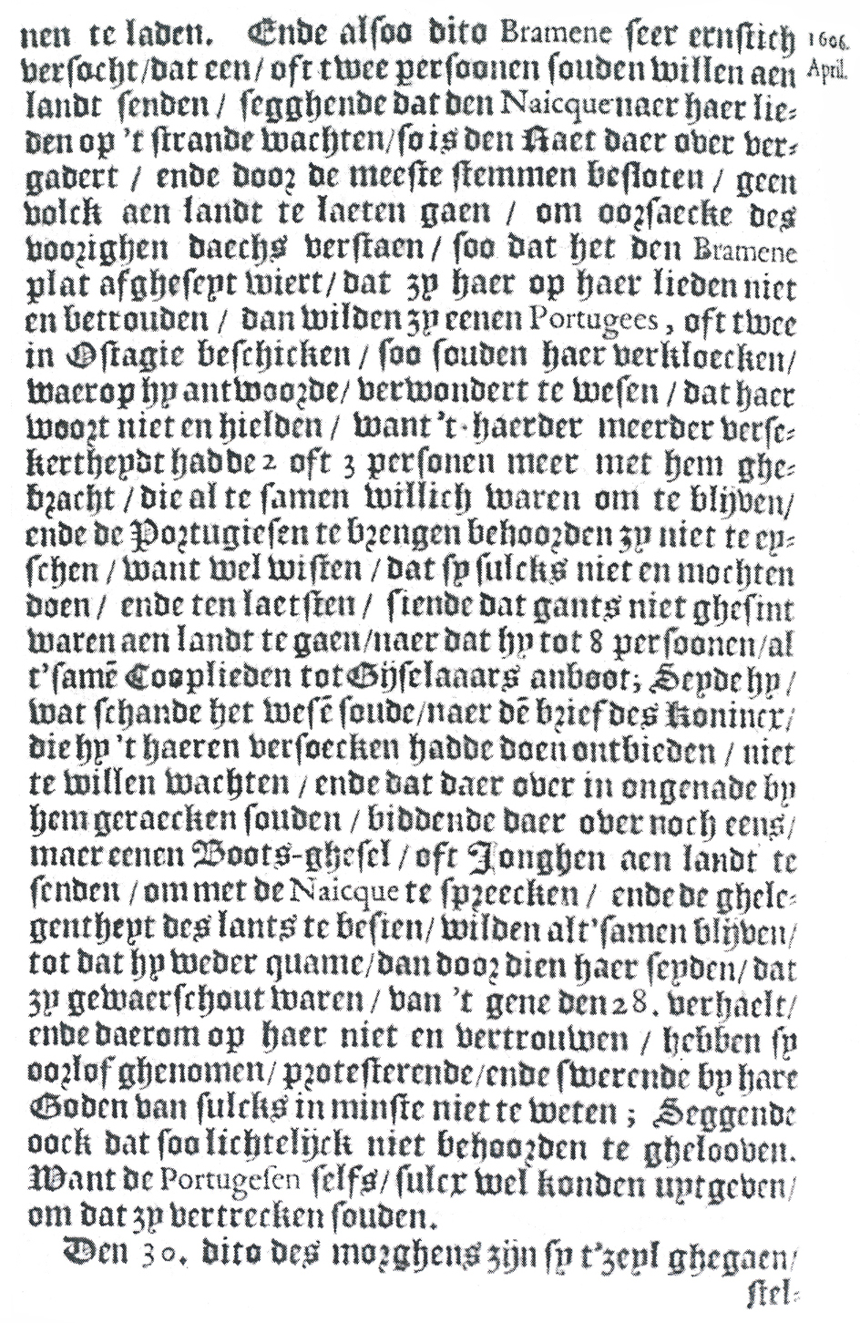meeste stemmen besloten, gene volck aen landt te laeten gaen, om
