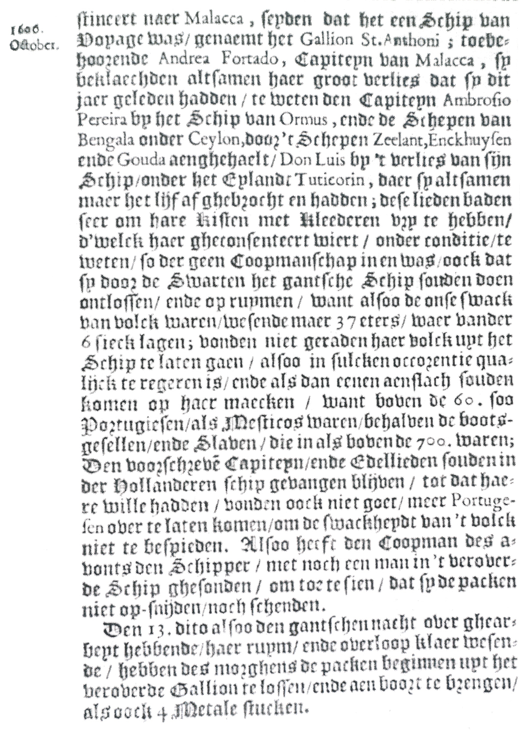 hebben des morghens de packen beginne uyt het veroverde Gallion te
