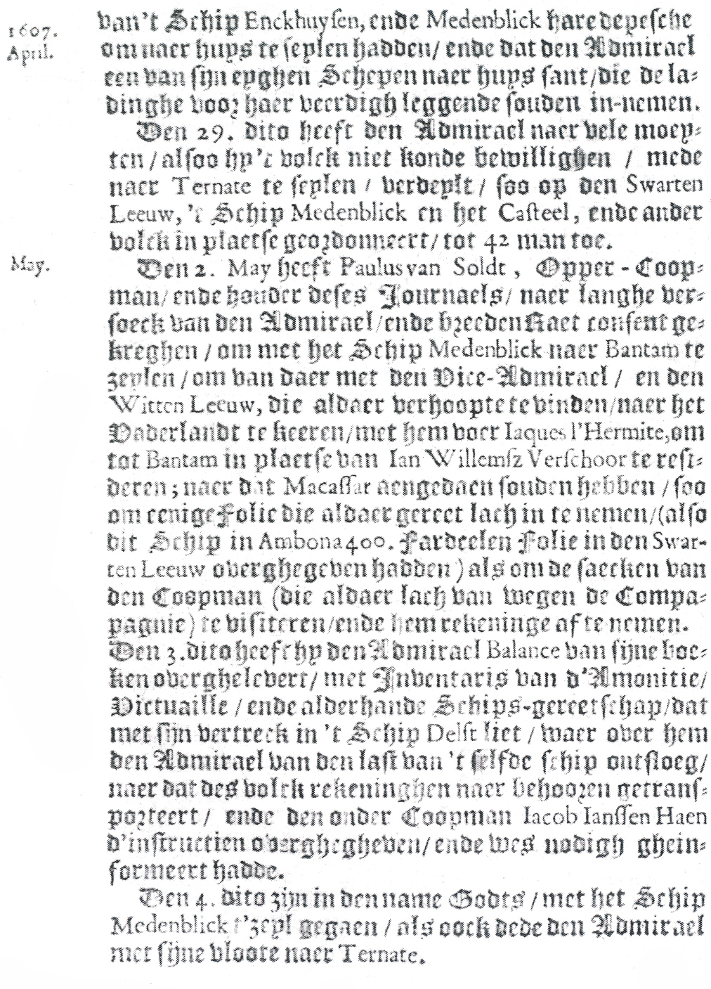 verhoopte te vinden, naer het Vaderlandt te keeren, met hem voer