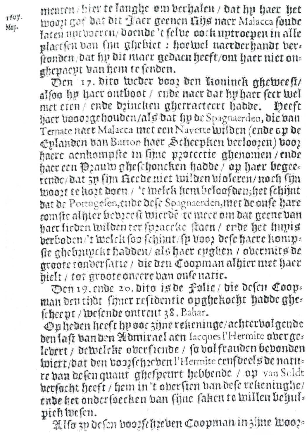 overmits de groote conversatie, die den Coopman alhier met haer hielt,